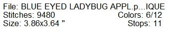 Blue eyed ladybug applique machine embroidery design